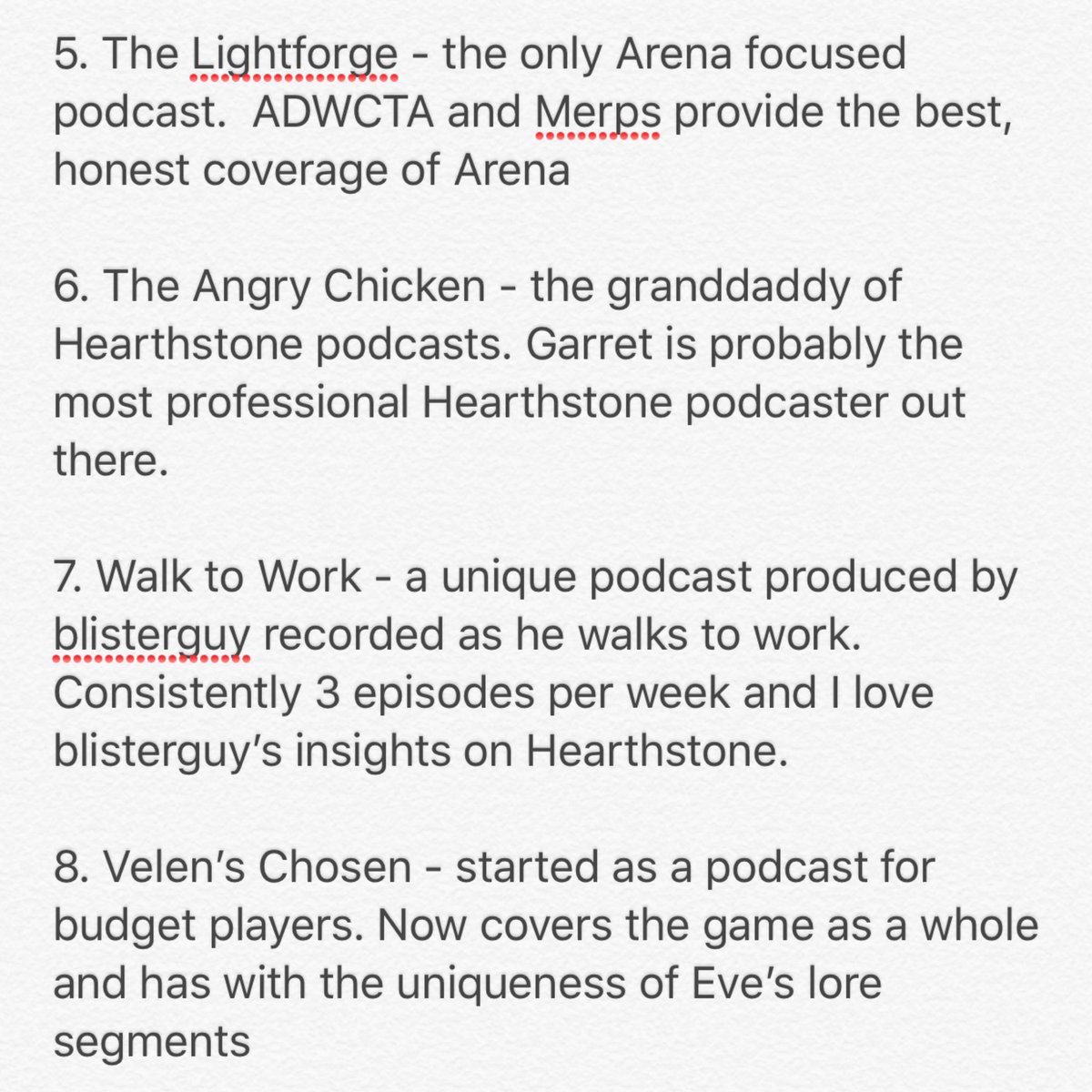 Thanks to the @PlayHearthstone podcasts for all their great content!