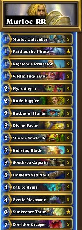 Hit rank 5 today after taking it easy the last couple days since the Rat Race. These were the decks that performed the best. The Murloc list is updated based on @dawniedk recommendation. it's just better with Mauls, cuz chums are bad.pic.twitter.com/xaDrQ1vO3k