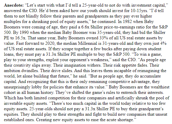 Attached Blurb from Eric Peters: "creating new assets to ease the asset shortage". Reminded me of my feeling that financial capital's value is declining relative to human capital I've said it before - the market is begging you to start a company https://moontowermeta.com/the-peace-dividend-of-overvaluation/ …pic.twitter.com/sfTeRRWUUu