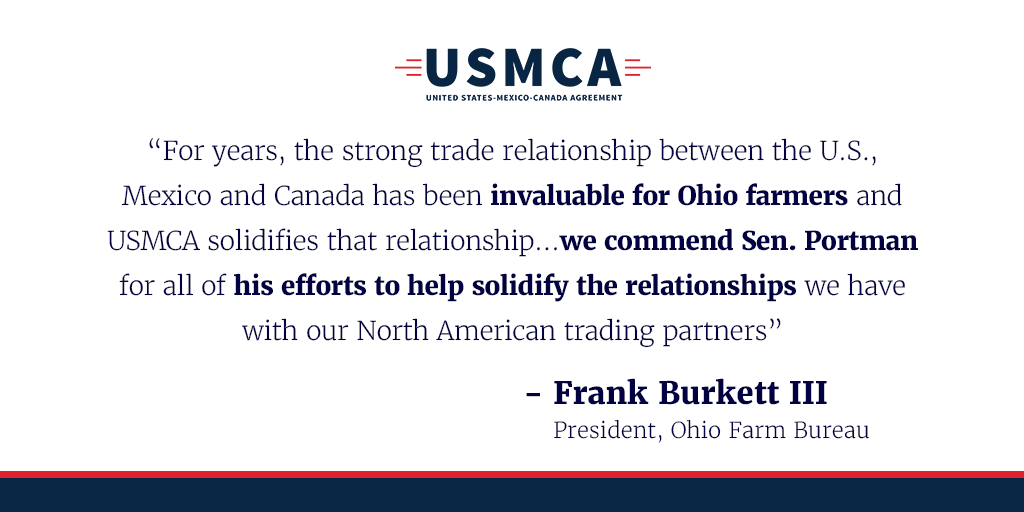 #USMCA will level the playing field for #Ohio farmers and create new ag export markets worth tens of millions of dollars.