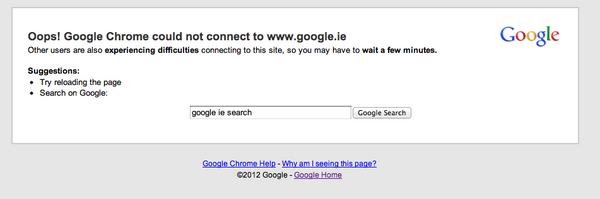 Very odd - Google.ie and http://Google.com not available but http://Google.co.uk loads in browser