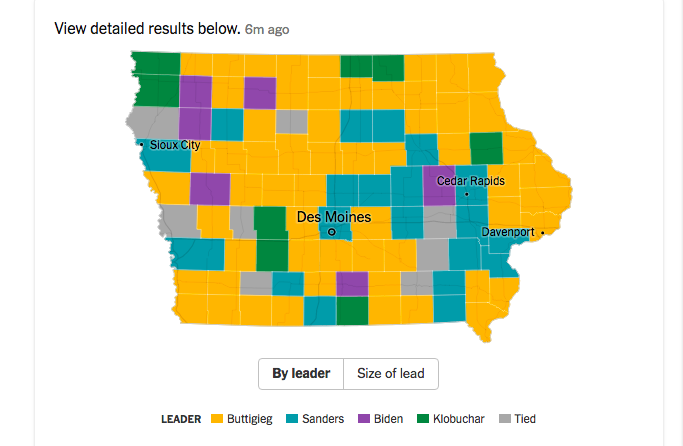 Only 62% reporting, so some counties could flip. But on current map: - Buttigieg winning large share the rural counties - Klobuchar winning pockets of low-population counties - Sanders taking some major Eastern Iowa Dem counties, also some small ones w/ Latino populationpic.twitter.com/y4kg1kE27B