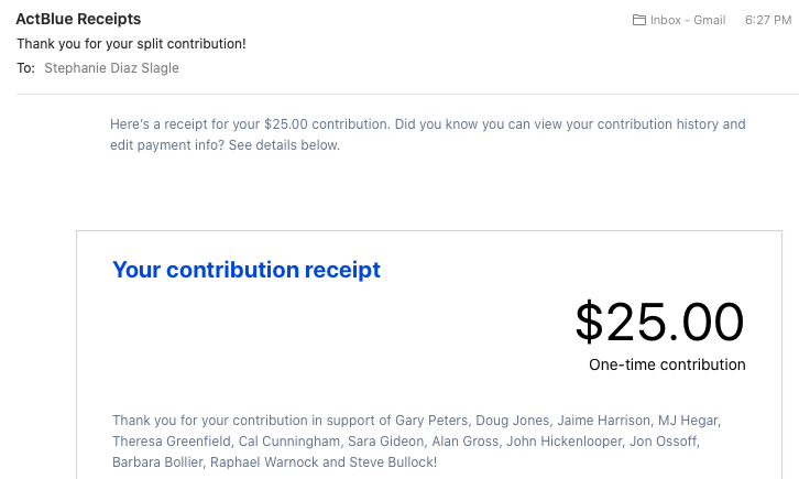 This spreads your funds among all the races that we need to win. Not just Mitch.