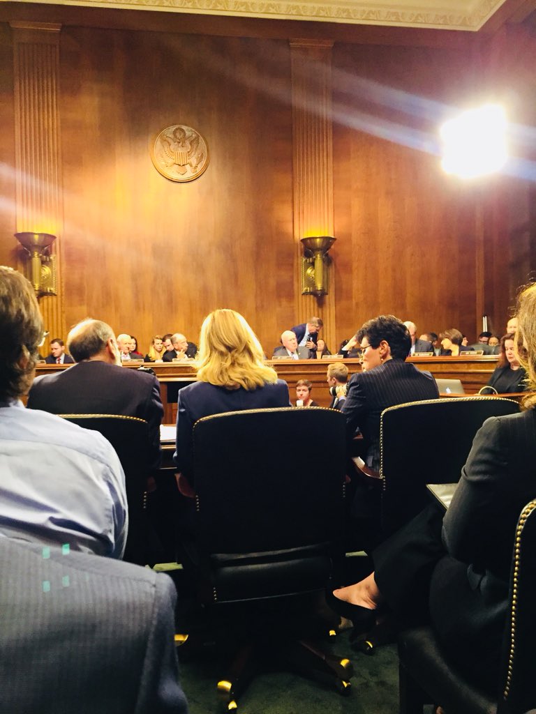 I am seated just feet behind Dr. #ChristineBlaseyFord. She speaks with confidence and clarity as she tells the story of the assault she experienced at the hands of Brett Kavanaugh. Her voice is cracking and soft. She’s here not because she wants to be but out of duty.pic.twitter.com/xD2HKq0Ue1