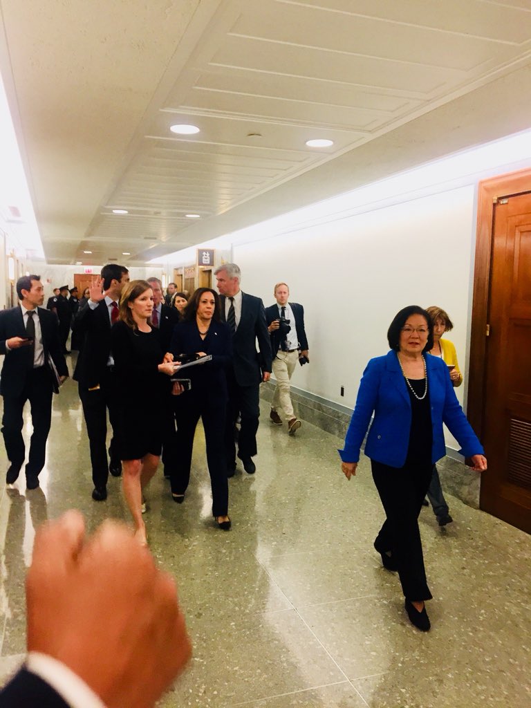 Happening Now: Senators @KamalaHarris @SenWhitehouse @SenBlumenthal @maziehirono walk out of sham Senate Judiciary Committee mark up after Committee declines to issue subpoena for testimony from Mark Judge. #KavanaughHearingspic.twitter.com/XWJIgIp0DP – w: U.S. Senate Judiciary Committee