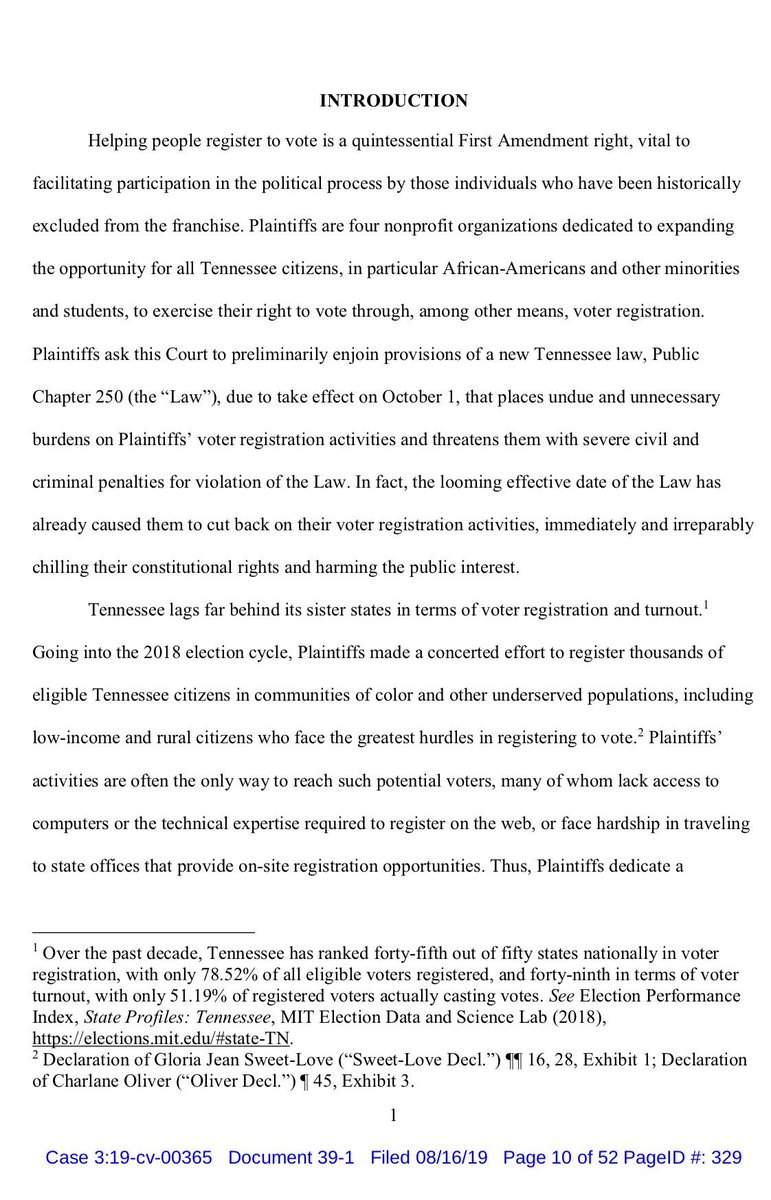 ALERT: We are suing Tennessee to block implementation of an ugly #votersuppression bill that seeks to impose criminal penalties and fines on groups that register people to vote. Today, we are seeking emergency relief to BLOCK implementation of that bill until trial. @LawyersCommpic.twitter.com/z1NxgdtkNv