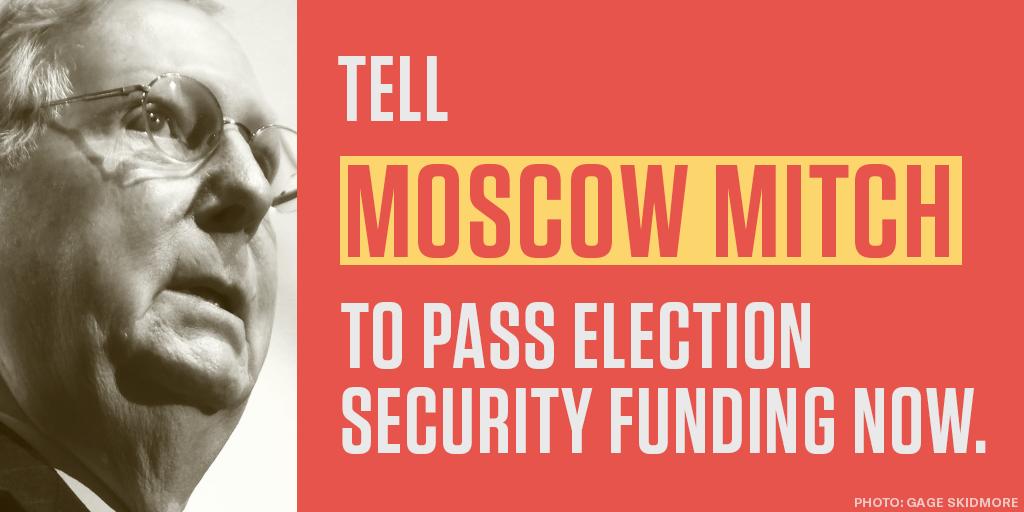 #MoscowMitch to pass election security funding now. Text PROTECT to 21333 to call your Senator.pic.twitter.com/y4CJi71Uh8