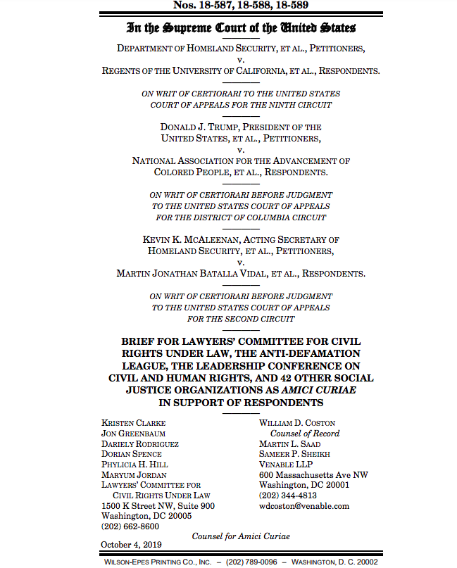 For more info. about the extensive reliance interests that DREAMers & communities hold in #DACA, read our @lawyerscomm, @ADL, @civilrights brief here👇🏾 The #SCOTUS must reject this administration's unlawful attempt to terminate the program. #HomeIsHerehttps://lawyerscommittee.org/civil-rights-groups-file-amicus-brief-before-supreme-court-challenging-department-of-homeland-securitys-rescission-of-daca/ …