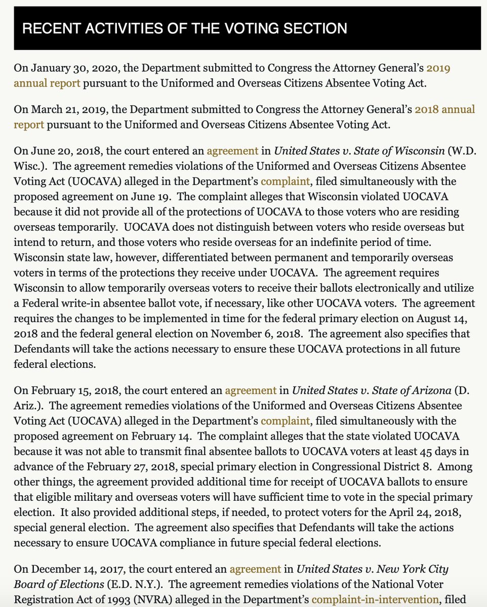 There have been a few voting rights issues emerging across the country. One place that hasn't lifted a finger in 2020-- the Justice Department's Civil Rights Division. No guidance, no cases, nothing. I started off my career here and find the absence of activity appalling.pic.twitter.com/JpTCiBzClh
