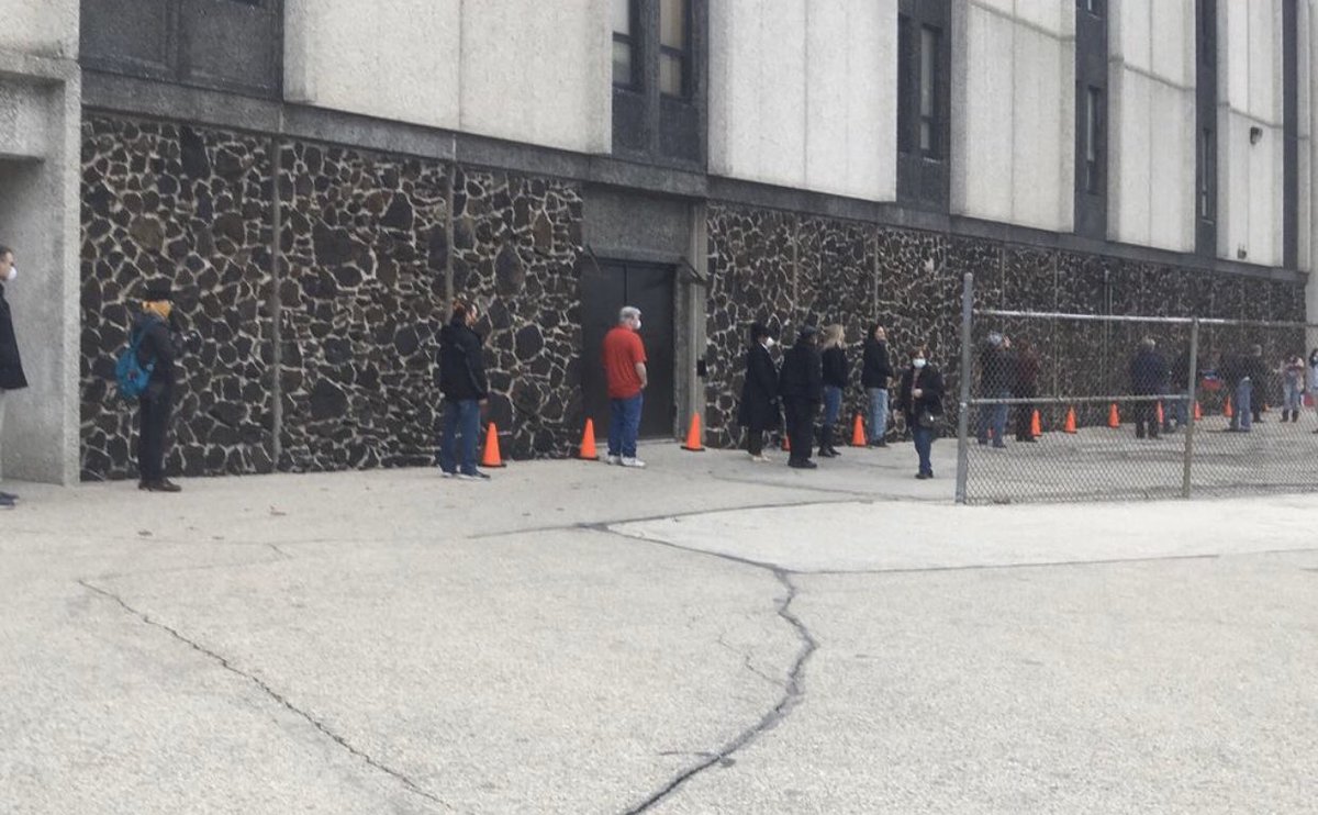 Republicans took out polling places so there are now only 5. Massive numbers of people touching the same space breathing the same air all day long. During a viral pandemic. Never vote for them again. Ever.