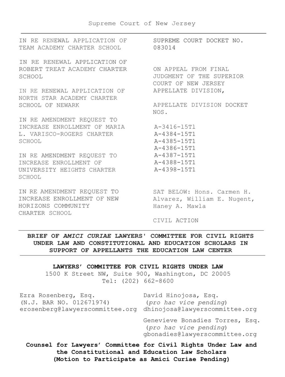 NEW— Along w/ a coalition of 26 constitutional and educational law scholars, we’re urging the NJ Supreme Court to order the state’s Education Comm. to investigate racial segregation and other threats that may result from unchecked charter school expansion in Newark. @LawyersCommpic.twitter.com/0OQw7GQpu1