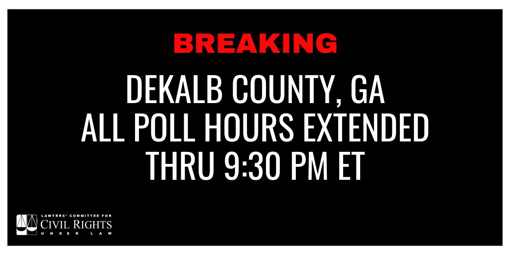 DeKalb County voting hours are extended to 9:30 p.m. for all polling places that were still open at 7 p.m.