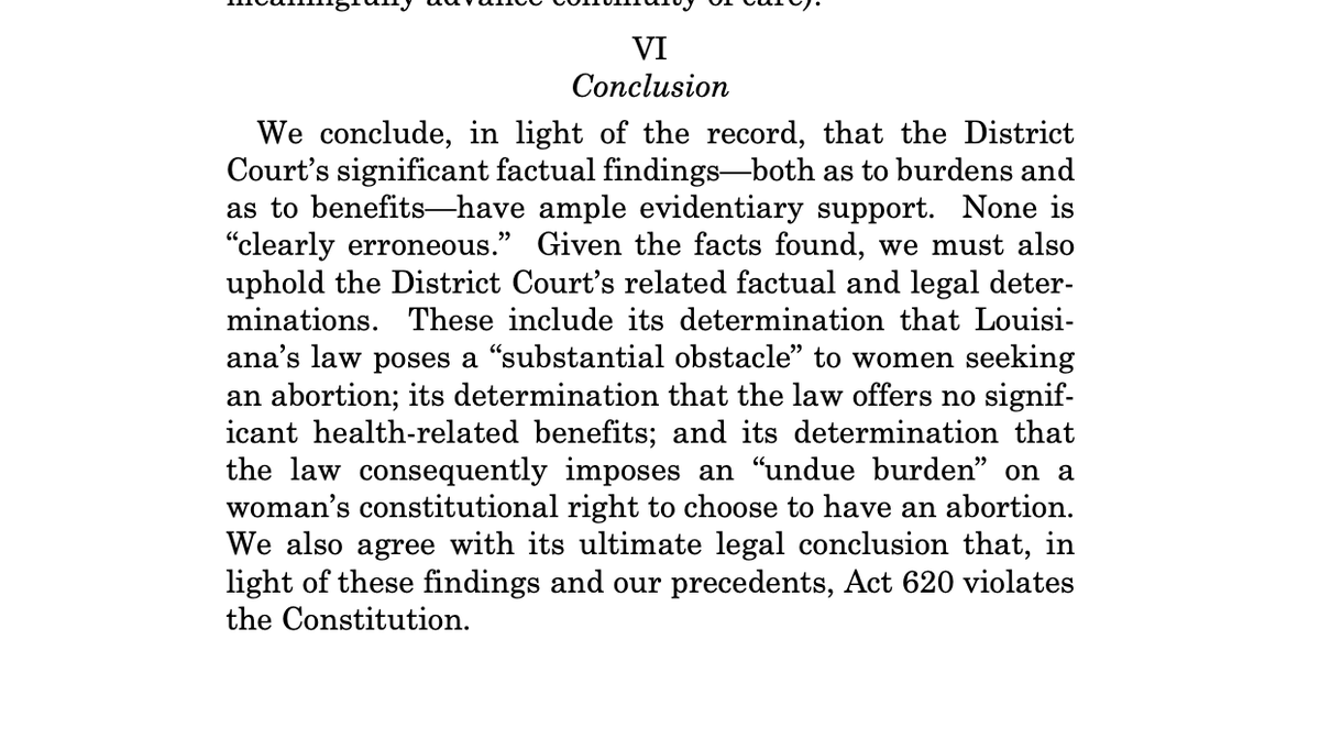 BREAKING: Supreme Court REJECTS Louisiana law intended to shutter abortion clinics across state Court finds Act 620, which sought to impose burdensome admitting privileges restrictions, unconstitutional. Breyer authors ruling joined by 3. Roberts concurs on stare decisis groundspic.twitter.com/787P8vMXTb