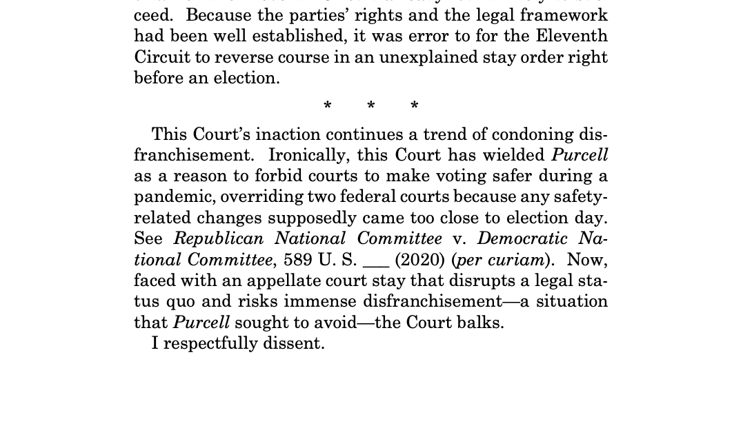 Justice Sotomayor BLASTS her colleagues for taking action that, once again, continues a trend of condoning mass disenfranchisement.pic.twitter.com/TPE5xrgjNz