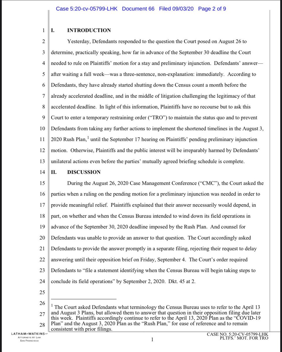 Along with our partners, we filed a temporary restraining order last night asking the court to extend counting as Trump prematurely pulls back field operations. The court will hear argument by zoom at 6ET tonight. @LawyersComm @lathamwatkins @NatUrbanLeague @BAJItweet @LWV