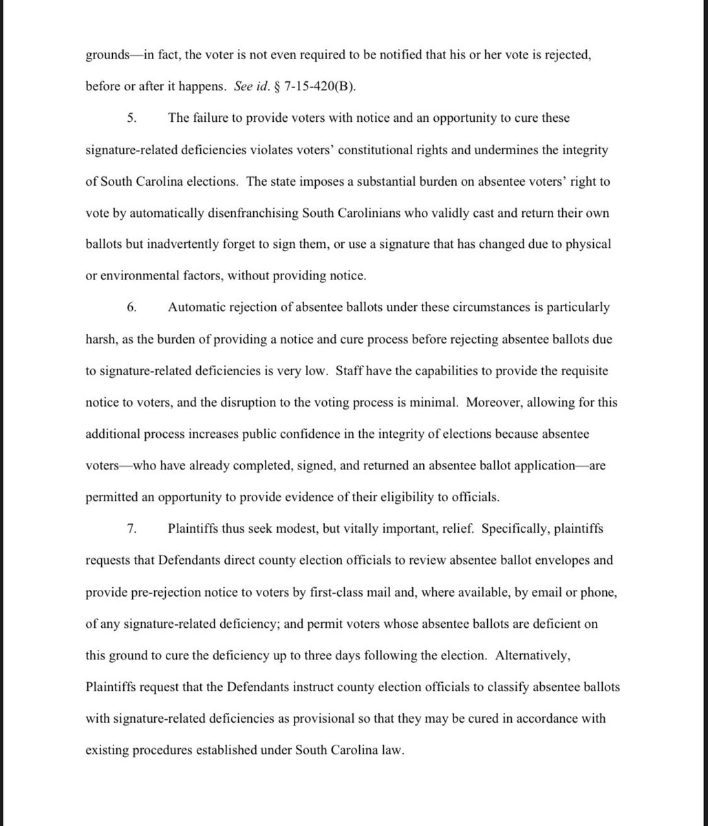 BREAKING: We sued South Carolina to protect the rights of those casting absentee ballots. We are fighting to ensure that signature matching, NOT required under law, or minor omissions are not used to reject ballots. Thousands were impacted in 2018. We’re taking action now.pic.twitter.com/gHT0HZmRyk