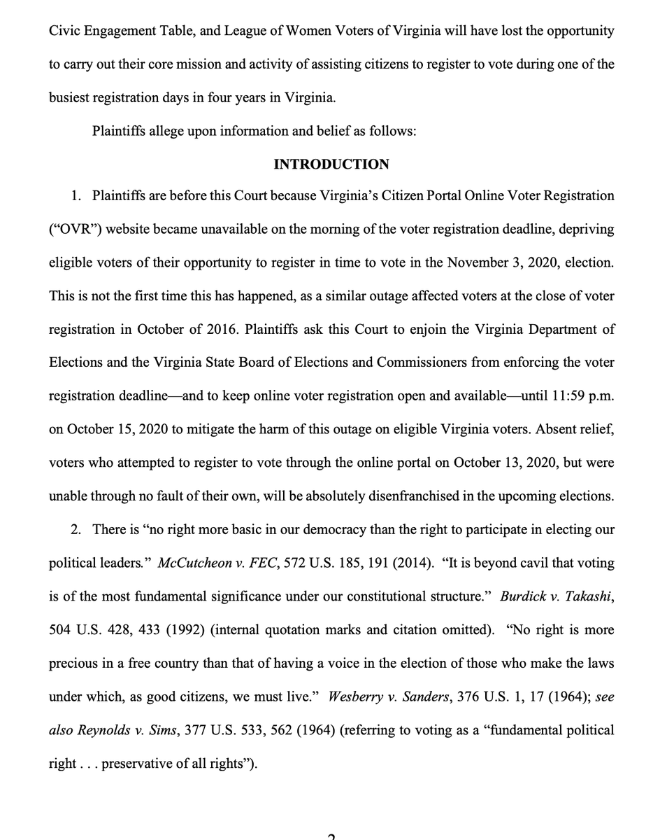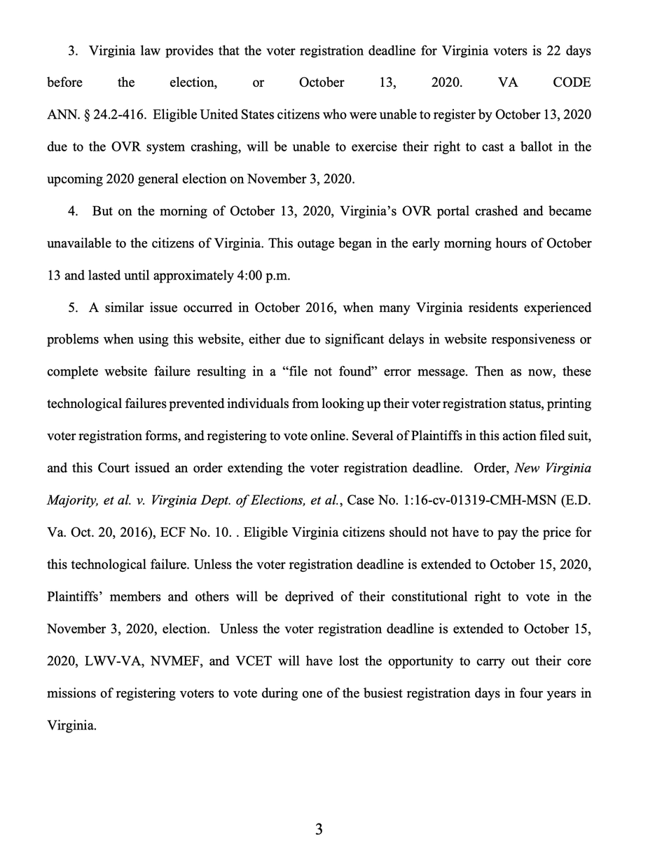 BREAKING: We just sued Virginia after its online registration site collapsed on the eve of today's deadline. In 2016, we sued Virginia on the SAME exact issue when the site crashed hours before the deadline No eligible Virginian should be disenfranchised because of state error pic.twitter.com/elfDBVKEZn