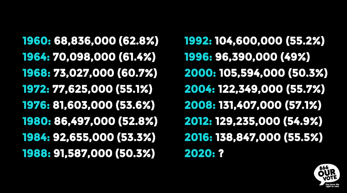 Over 100 MILLION people cast their ballots during this year's early voting season, 72.8% of the total votes cast in 2016. If this incredible turnout continues, history will be made. Get out & vote! #Election2020 #ElectionDay #vote2020pic.twitter.com/Ubchcq76Qa