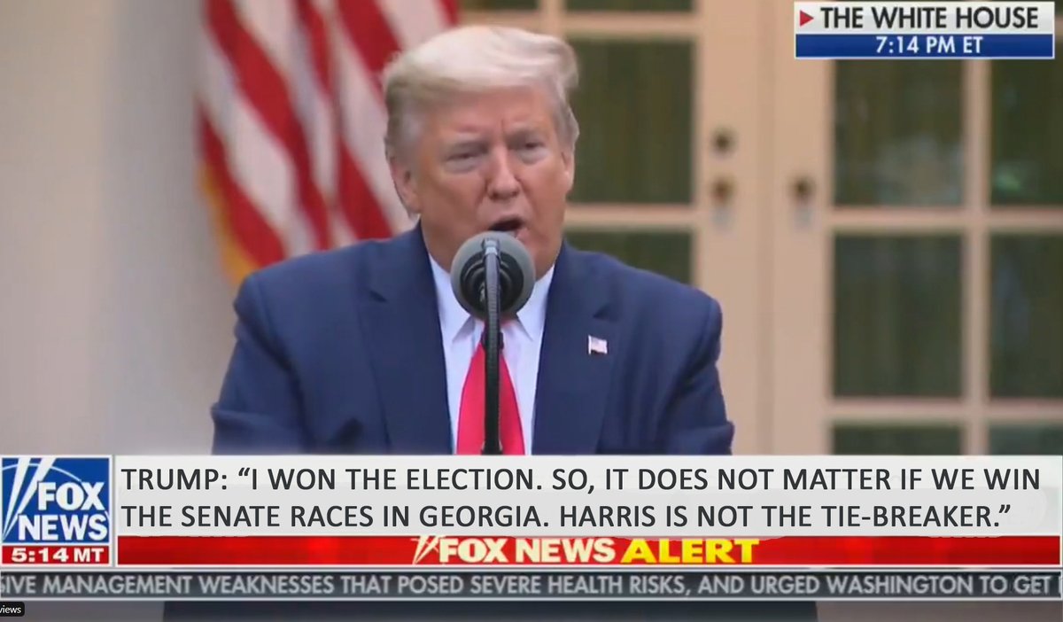 Today, Donald Trump blasted the Republican Party for focusing on the Georgia Senate races as a bulwark against Democratic control of the Senate. "That is based on Harris being the VP," he said "but everyone knows Pence and I won the election, by a lot, really, we did, I mean it."pic.twitter.com/9g4Wrzlbkw