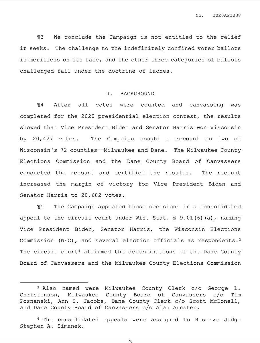 🚨BREAKING: Wisconsin State Supreme Court REJECTS Trump's attempt to discount election results from Wisconsin and Dane Counties. As the electoral college meets today, lingering post-election cases are finally dying out. #ElectoralCollegepic.twitter.com/ZsEvaBJw3w