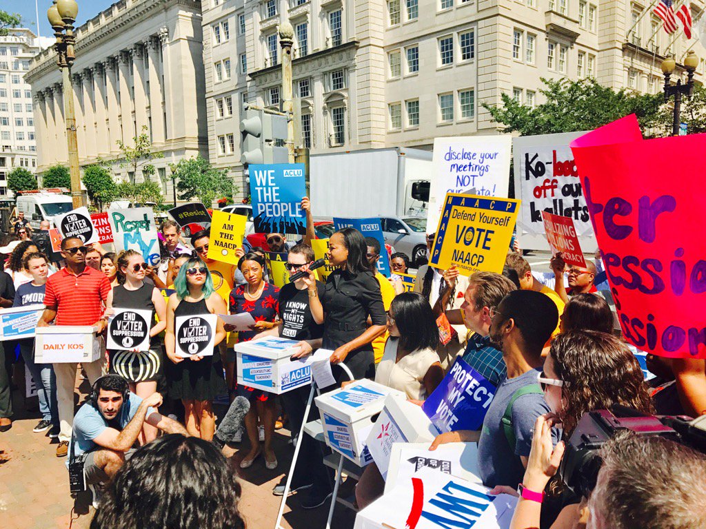 While sham Kobach Commission meets to lay groundwork for #VoterSuppression, we are speaking out. ✊🏾#RespectMyVotepic.twitter.com/IYq3tVADqt