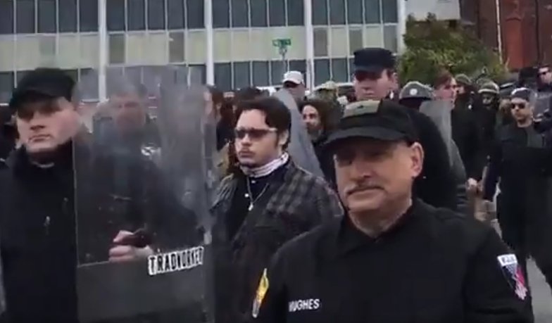 This is Harry Hughes of the neo-Nazi National Socialist Movement. He came all the way from Arizona, where he leads vigilante border patrols. pic.twitter.com/aPWM4h7pJX
