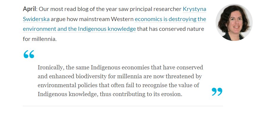 @KrystynaSwider4 argue how mainstream Western economics is destroying the environment and the#Indigenous knowledge that has conserved nature for millennia. Read the blog & the rest of our top 10 from 2021 --> https://www.iied.org/iieds-best-2021-blogs …pic.twitter.com/zeckHtJ4Qz
