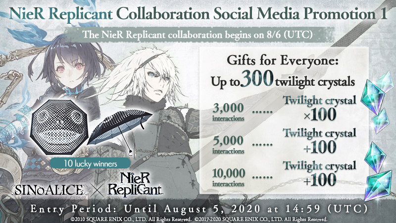 A social media campaign is being held in celebration of the NieR Replicant collaboration! Receive free twilight crystals based on the amount of interactions each post gets!