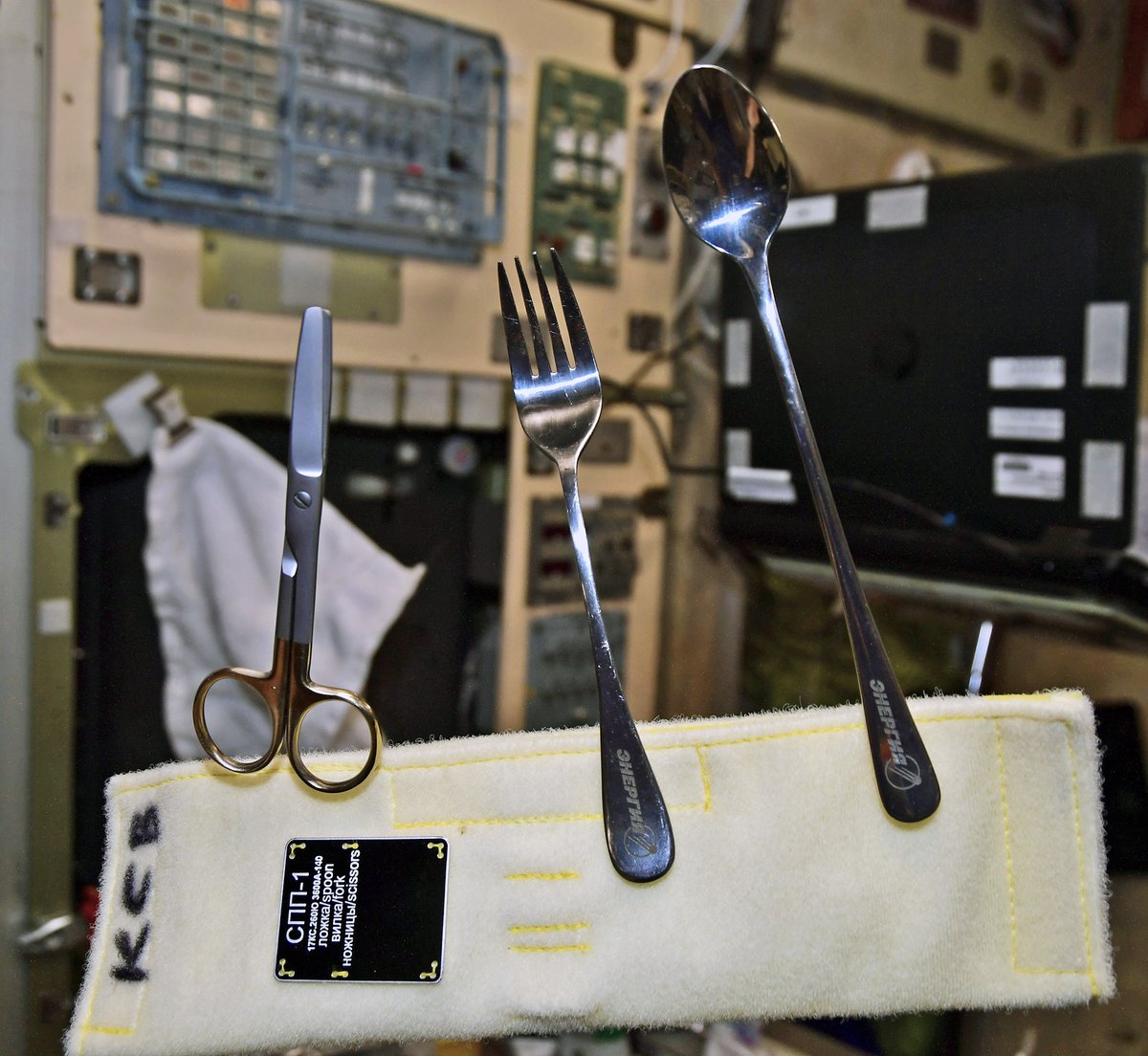 Ложка, вилка, нож? Нет… Ножницы! У каждого космонавта есть свой набор СПП. Мы их даже подписываем, чтобы не перепутать. Эта непонятная на первый взгляд аббревиатура расшифровывается не иначе, как «средства приема пищи», т.е, по-земному, это столовые приборы. #жизньвкосмосеpic.twitter.com/O44FqjHW2w