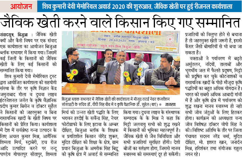 We are pleased and honored to invite you to the workshop on organic farming is being organized by SKD Memorial Trust, at Bijua Block Auditorium, Kheri, on 29 January 2020 at 1 pm. It is a privilege to have you with us at this special occasion .