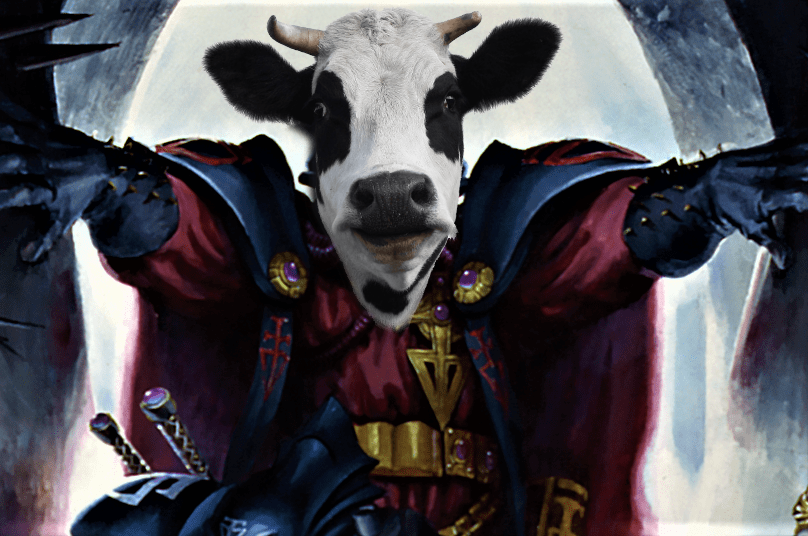 Happy #CowAppreciationDay from us at Secret Cow Level! Let's celebrate together by replacing a part or word of one of your fav cards with "cow". What can you come up with and why isn't it as terrifying as this image of Archinquisitor Nicowdemus? #indiegame #indiedev #doomtrooperpic.twitter.com/tW1MQvpWYk