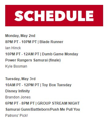 Happy Monday! Here's what our streaming schedule looks like this week on http://twitch.tv/easyallies pic.twitter.com/x57lGVE93X
