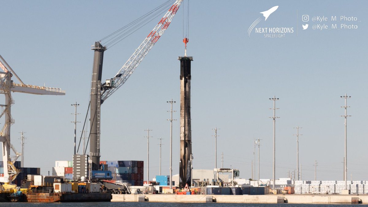 B1058.3 is off the stand and will be lowered horizontally onto it's transporter soon. #SpaceXFleet #SpaceXpic.twitter.com/JXYqaFSWN3