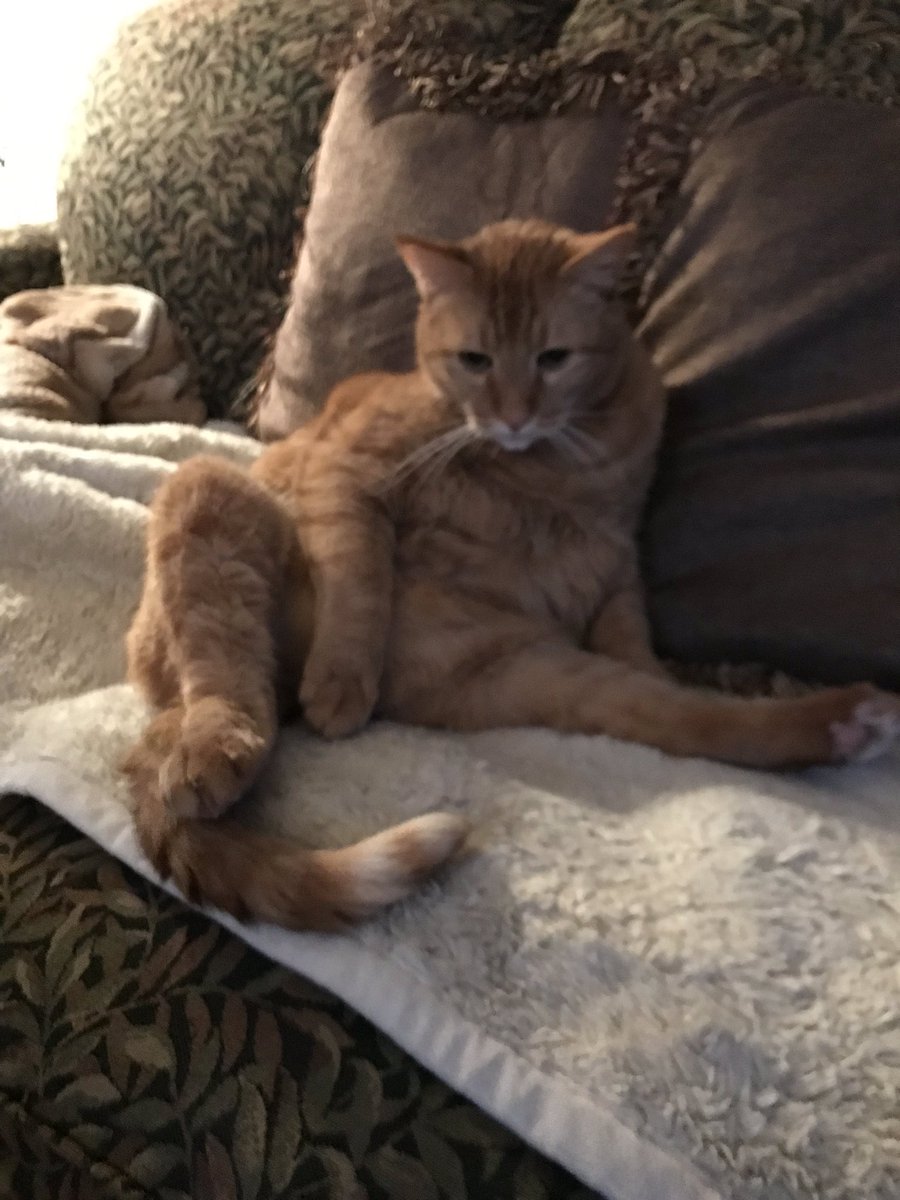 Had to use my inhaler tonight (damn pollen) and my asthma kitty was wheezing bad- I tackled him and got his prednisone down his throat and escaped with only one bite!