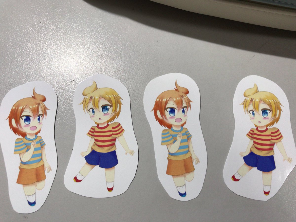 ちなみに、調子に乗って量産したシールがこれ(画像では4枚しかないけど) 配れるほど作ってしまったんだが欲しい方いらっしゃるかしら…pic.twitter.com/wS1P5L2gbq