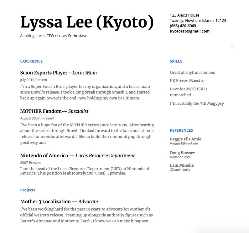 Kyoto (@KyotoSSB) is the CEO of Lucas. Thank you for providing us with this resume.pic.twitter.com/7bIEc8ZtQo