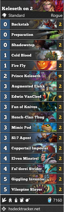 Built a keleseth version of the Tempo Rogue. The deck is alright, played it with a mediocre winrate of 58% between 100-250 today. There are definitly more broken things out there atm though. AAECAaIHBIwCsgKGCZziAg20Ae0CmwXdCPzBAoHCAuvCAtzRAtvjAqbvAuL4AtGAA/WAAwA=pic.twitter.com/FUf0s7HWIn