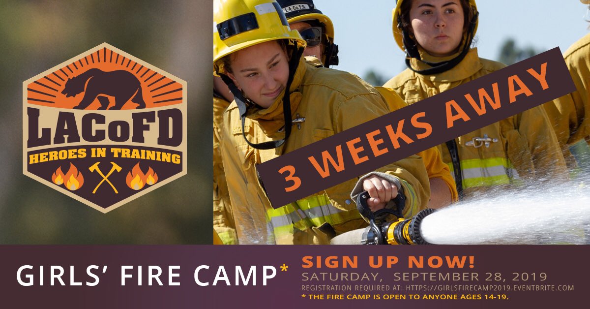 Join us on Saturday, September 28th! There’s still time to sign up for the LACoFD Girls’ Fire Camp.pic.twitter.com/7K2QIoa26M