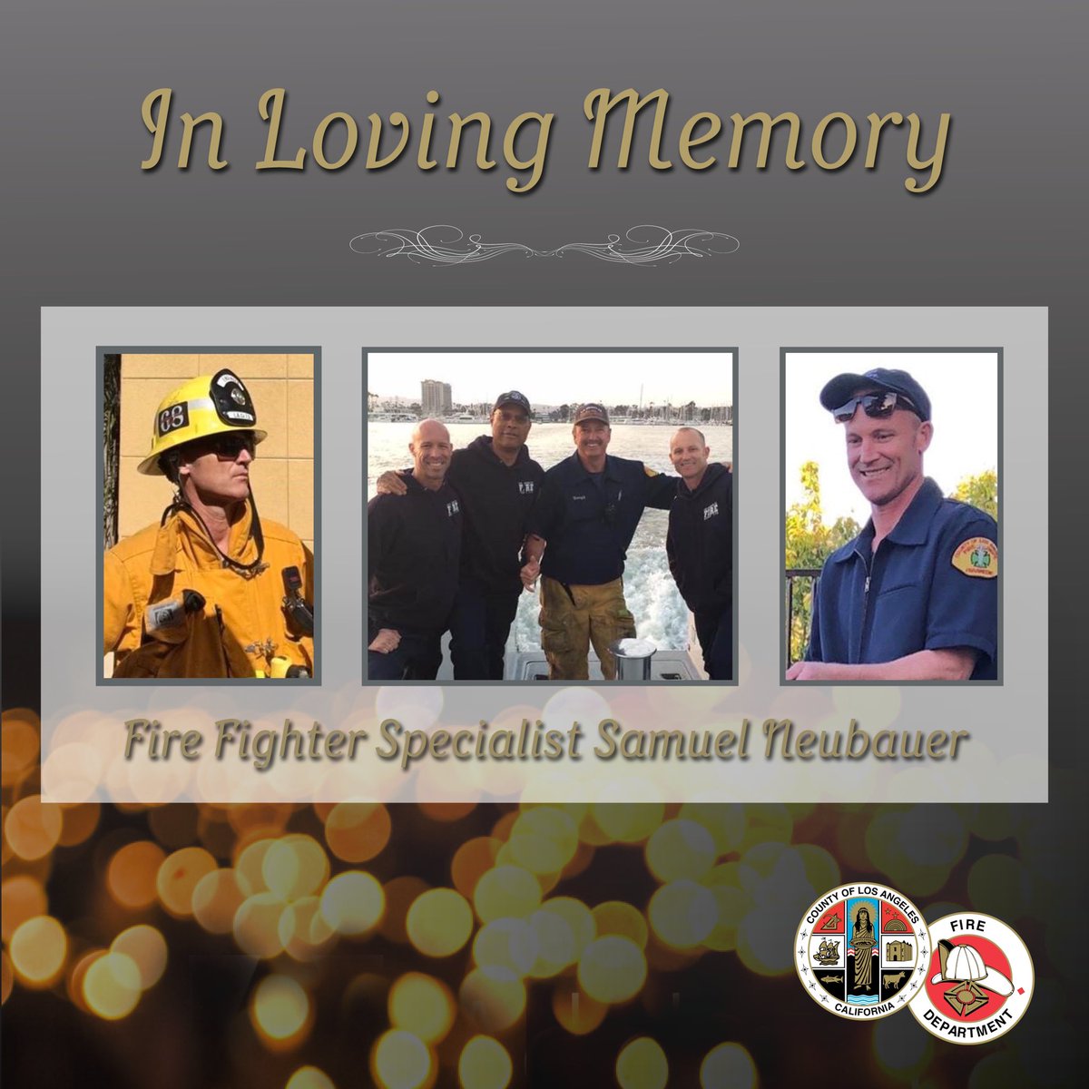The memorial service for LACoFD Fire Fighter Specialist Samuel Neubauer will be streamed live on the LACoFD Facebook page beginning tomorrow, March 13, 2020, at 2:00 p.m. Our prayers and thoughts are with the entire Neubauer family during this incredibly difficult time. RIP 💔pic.twitter.com/3uLxQzgRj6