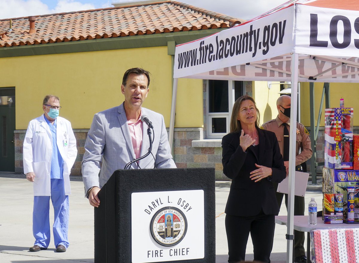 PERSONAL USE OF FIREWORKS IS NOT "SAFE" OR "SANE” Today, LACoFD joined Santa Clarita officials to share the dangers associated w/fireworks. In ALL unincorporated areas of LACo, it is illegal to store, manufacture, sell, use or handle ALL FORMS of fireworks w/out a valid permit.pic.twitter.com/wv8gXqrj3R