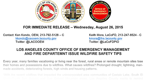 LA County Office of Emergency Management & Fire Department Issue Wildfire Safety Tips http://www.fire.lacounty.gov/wp-content/uploads/2015/08/PR-lacofd-OEM-Wildfire-15.pdf …pic.twitter.com/N259cqOIHE