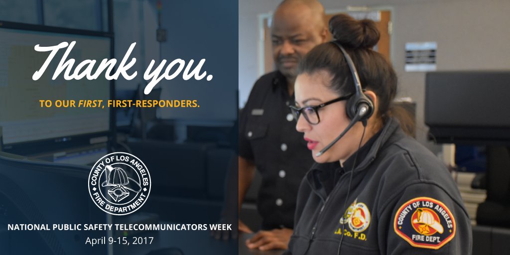 April 9-15 is National Public Safety Telecommunicators Week.Thank you to the dedicated professionals at the heart of our operations! #LACoFDpic.twitter.com/3p3ogb2KOu