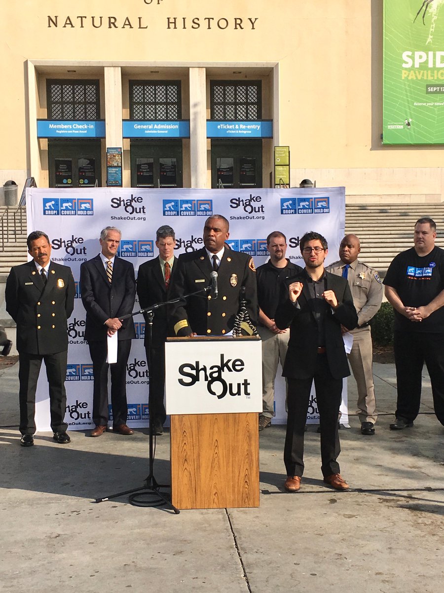Fire Chief Daryl Osby sharing tips to help you stay safe in the aftermath of a major earthquake. #ShakeOut. http://bit.ly/2yz5V82 pic.twitter.com/I7JBiW5bOB
