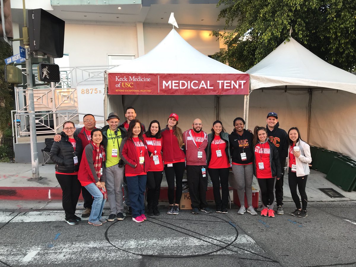 Firefighters and @KeckMedUSC are in front FS 7 ready for #LAMarathon Good luck to all the runners. We have a medical tent for any runner in need of medical attention.pic.twitter.com/MidUcaWNi2