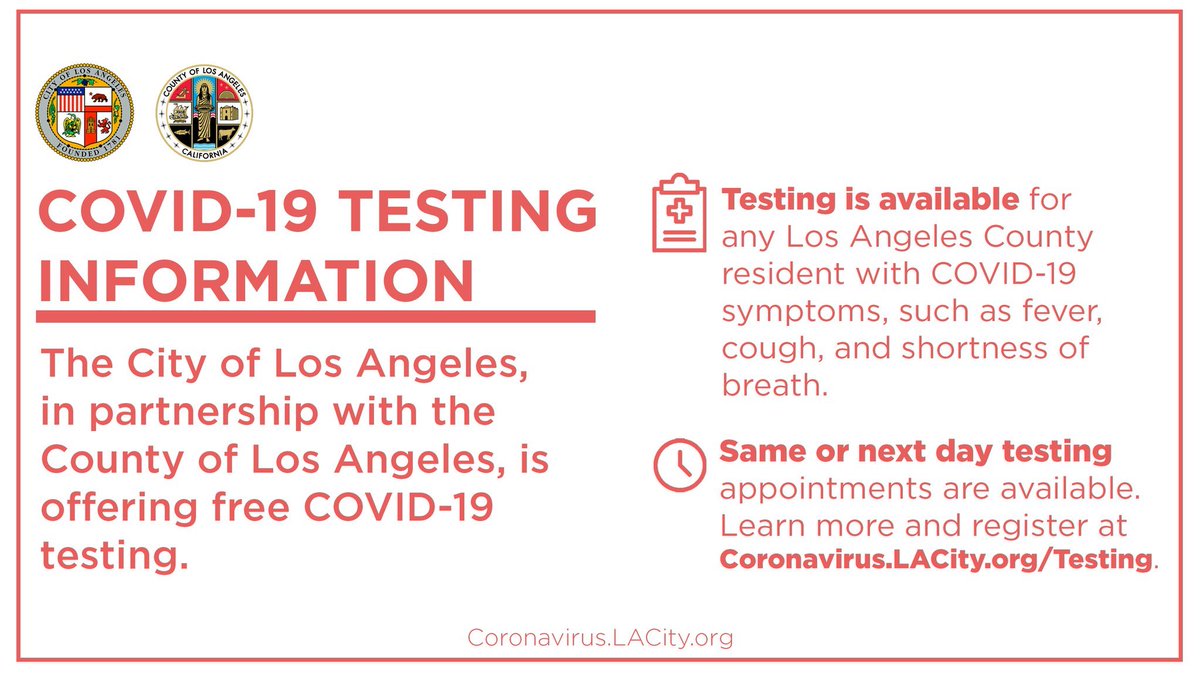#DidYouKnow @LACity now offers same or next day appointments to all @CountyofLA residents with COVID-19 symptoms. Priority testing was previously limited, but now anyone with symptoms can be tested quickly. Go to http://Coronavirus.LACity.org/Testing to sign up.pic.twitter.com/M85PlRzVOR