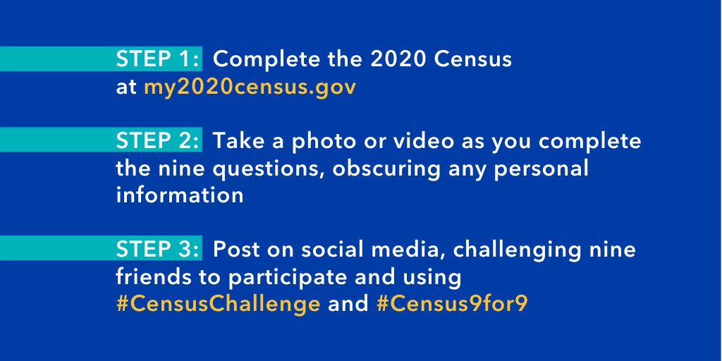 We won’t get an accurate count in 2020 unless everyone participates. That’s where the #Census9for9 Challenge comes in!pic.twitter.com/J2A9BfNCqn