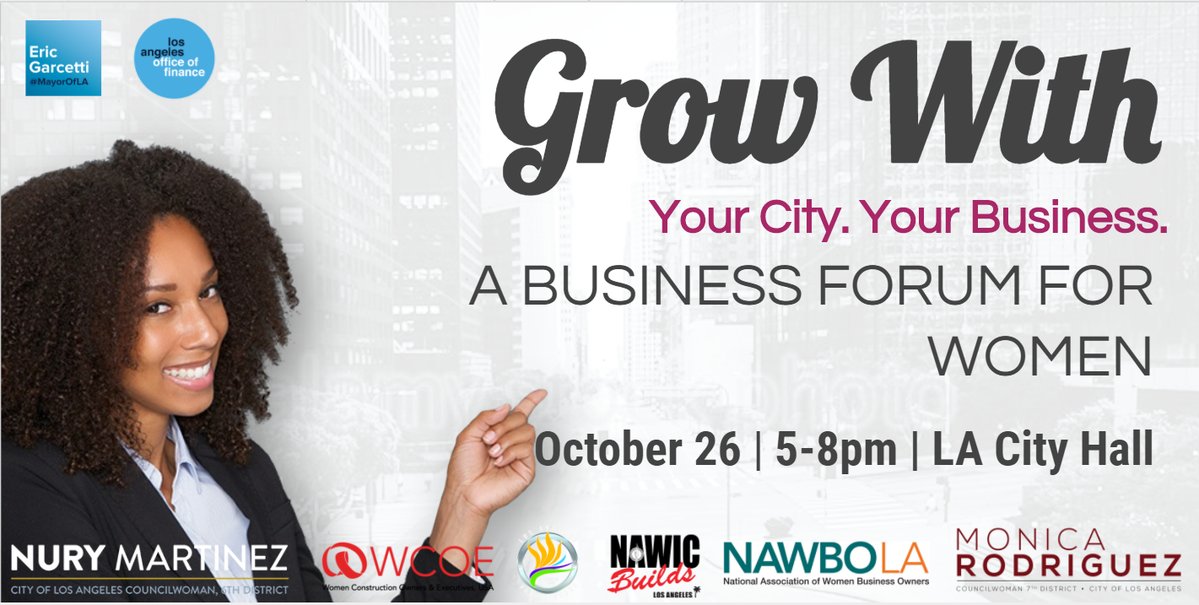 #WomenInBiz, join us for our first annual @LACity Women's Business Forum for panels, networking, resources & more! http://growwithla.eventbrite.com pic.twitter.com/o5uav9NXVw