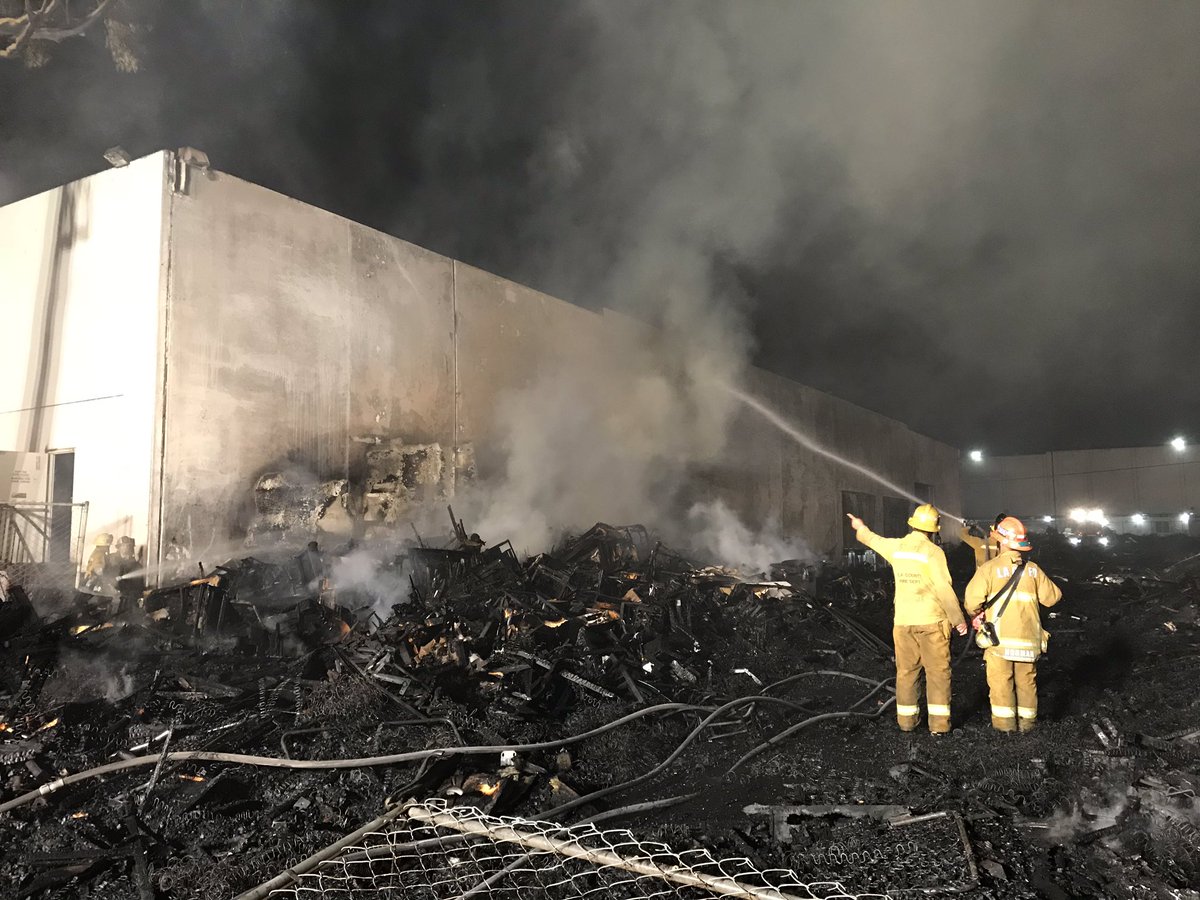 *UPDATE* #SaltLakeIC LA County Firefighters will remain on scene throughout the night extinguishing hot spots. Two large commercial buildings exposed to enormous radiant heat were saved by early initiation of a 3rd alarm assignment. #AggressiveTacticspic.twitter.com/5gnaI02GVh