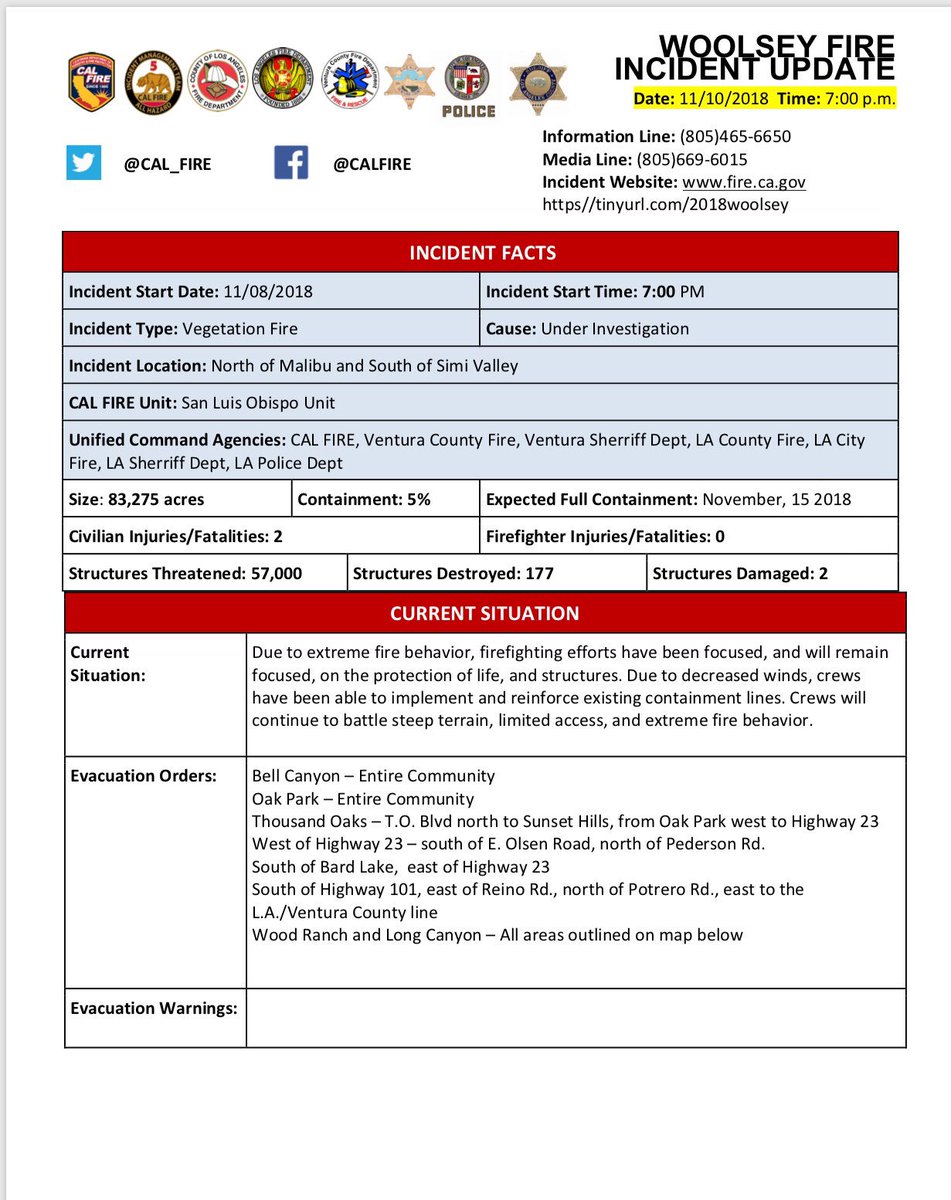 Reads as though Malibu is no longer under evacuation order, nor PCH closed at SE side (at Sunset Blvd). Please clarify.