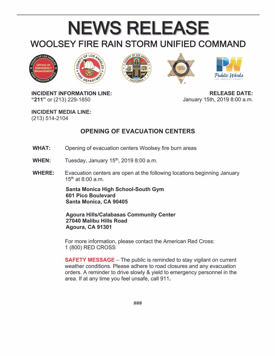 #WoolseyStorm *Update* @RedCross Evacuations Centers open at Santa Monica High School and Agoura Hills Community Centerpic.twitter.com/kUvWconkfp